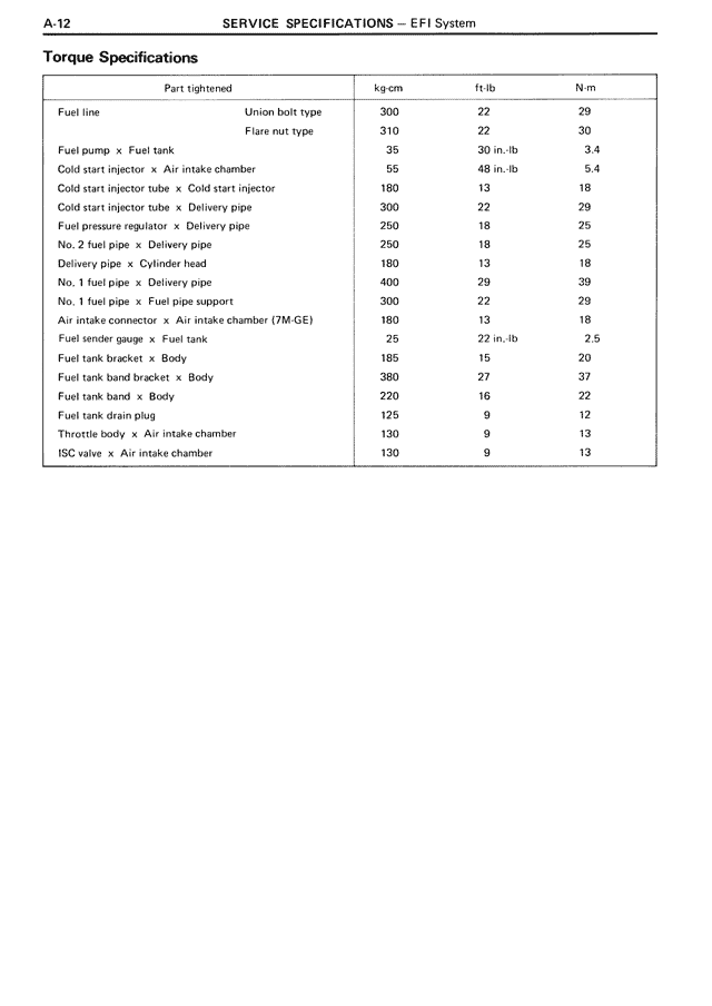 Torque Specifications
