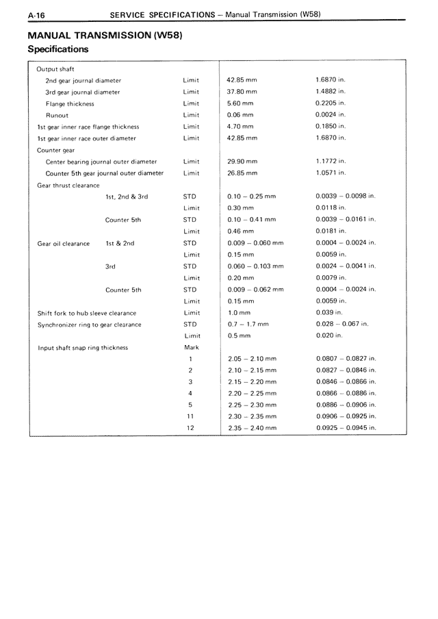 MANUAL TRANSMISSION (W58)