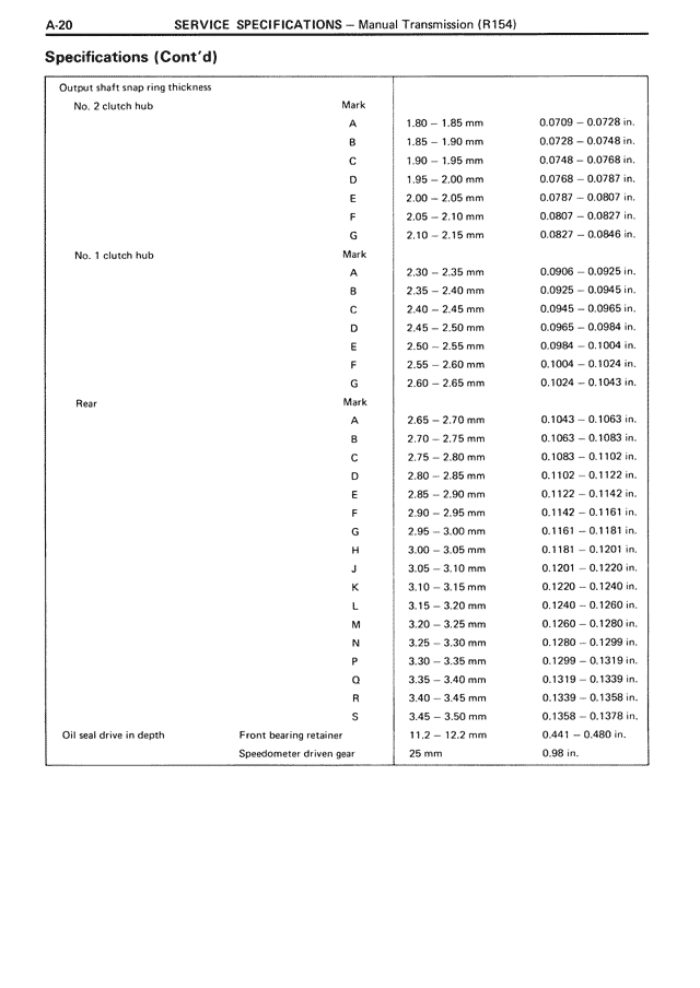 G 2.10 - 2.15 mm 0.0827 - 0.0846 in.