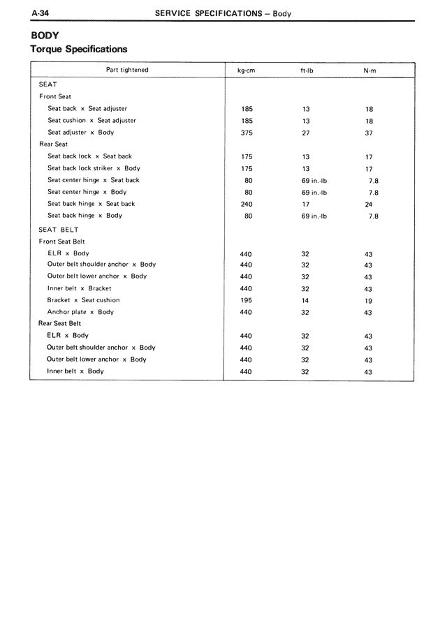 Seat back hinge × Body 80 69 in.·lb 7.8