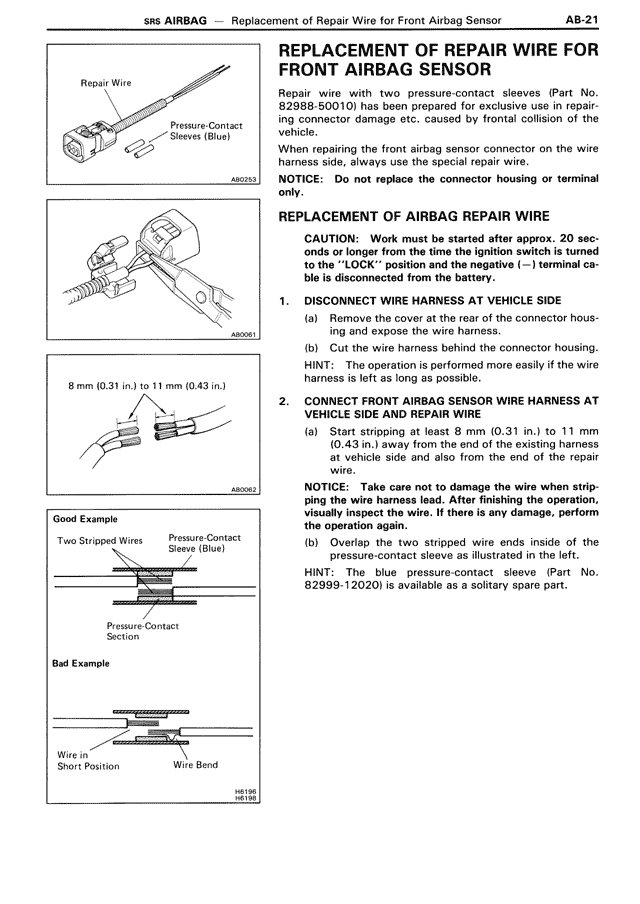 REPLACEMENT OF REPAIR WIRE FOR FRONT AIRBAG SENSOR