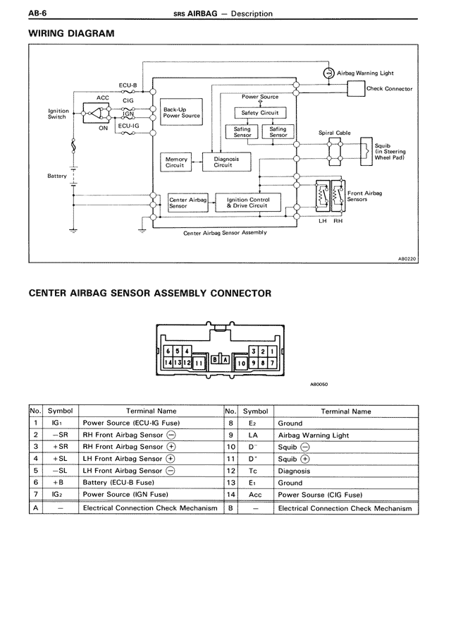 2 -SR RH Front Airbag Sensor (–) 9 LA Airbag Warning Light