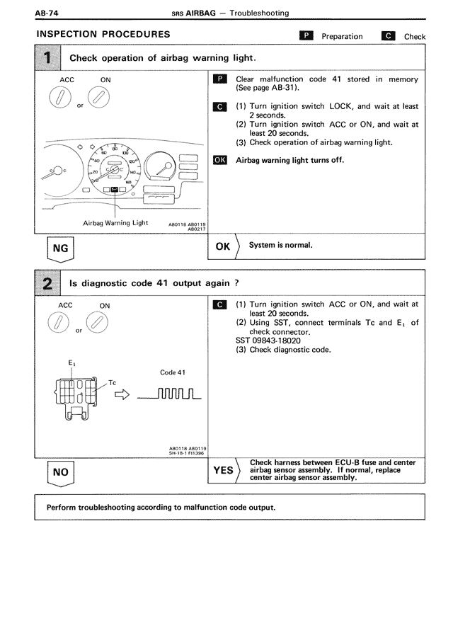 P Clear malfunction code 41 stored in memory (See page AB-31).