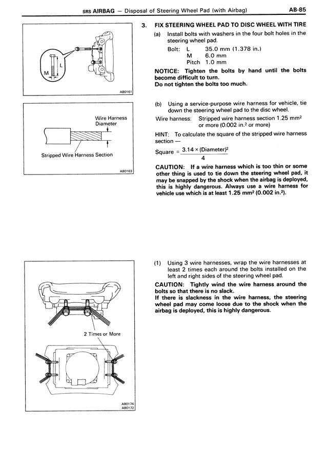 SRS AIRBAG — Disposal of Steering Wheel Pad (with Airbag) AB-85
