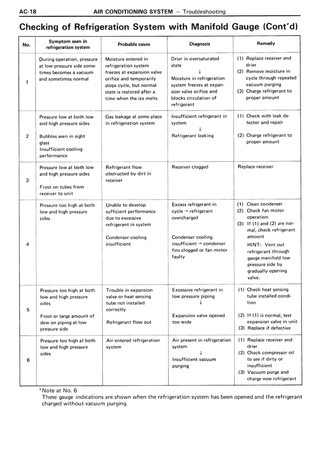 Checking of Refrigeration System with Manifold Gauge (Cont'd)