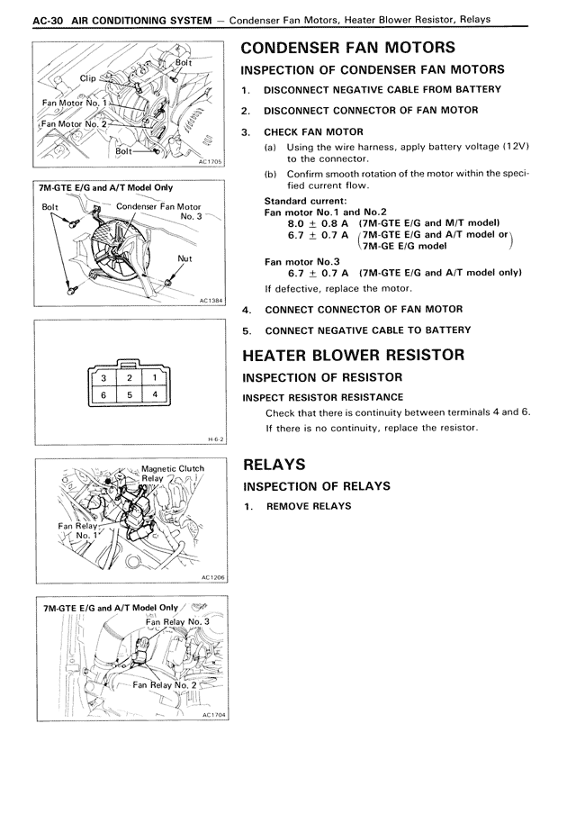 AC-30 AIR CONDITIONING SYSTEM — Condenser Fan Motors, Heater Blower Resistor, Relays