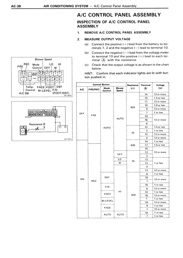 INSPECTION OF A/C CONTROL PANEL