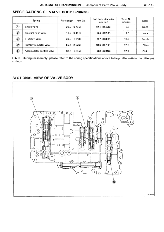 AUTOMATIC TRANSMISSION — Component Parts (Valve Body) AT-115