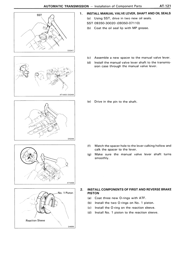 AUTOMATIC TRANSMISSION — Installation of Component Parts AT-121