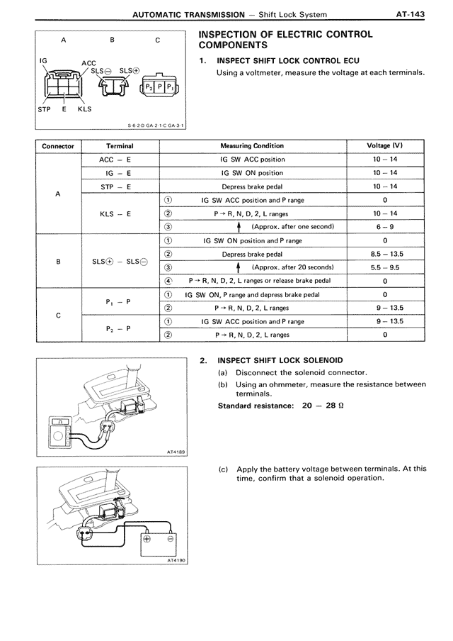 2. INSPECT SHIFT LOCK SOLENOID