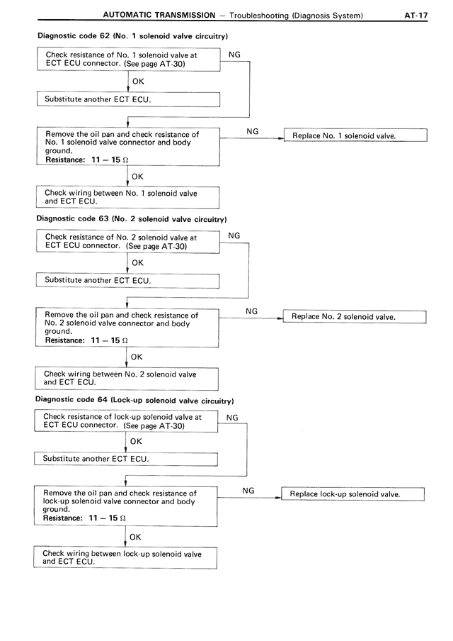 Diagnostic code 62 (No. 1 solenoid valve circuitry)