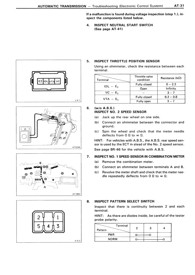 HINT: For vehicles with A.B.S., the A.B.S. rear speed sensor is used by the ECT instead of the No. 2 speed sensor.