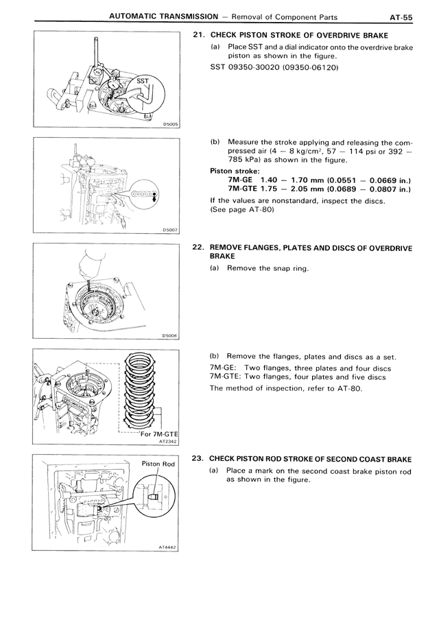 21. CHECK PISTON STROKE OF OVERDRIVE BRAKE