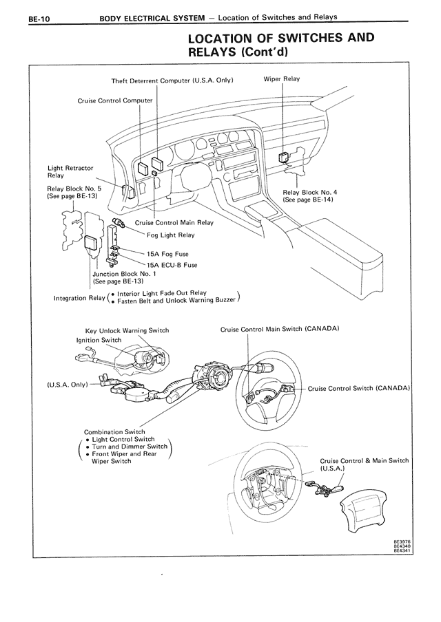 BODY ELECTRICAL SYSTEM — Location of Switches and Relays