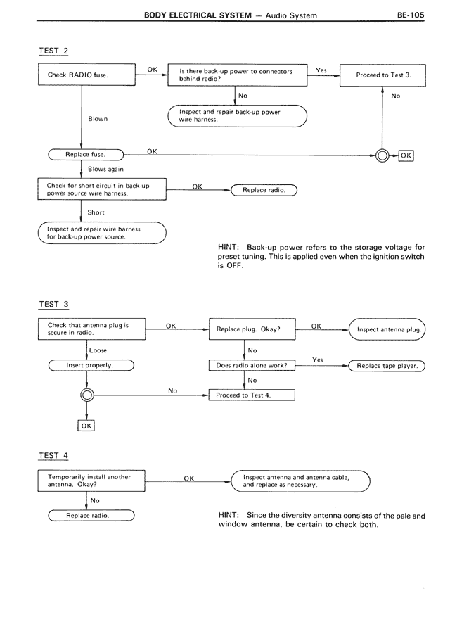 HINT: Back-up power refers to the storage voltage for preset tuning. This is applied even when the ignition switch is OFF.