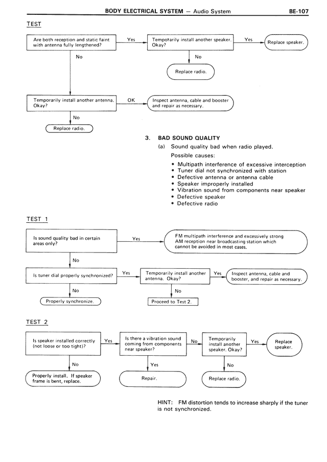 (a) Sound quality bad when radio played.