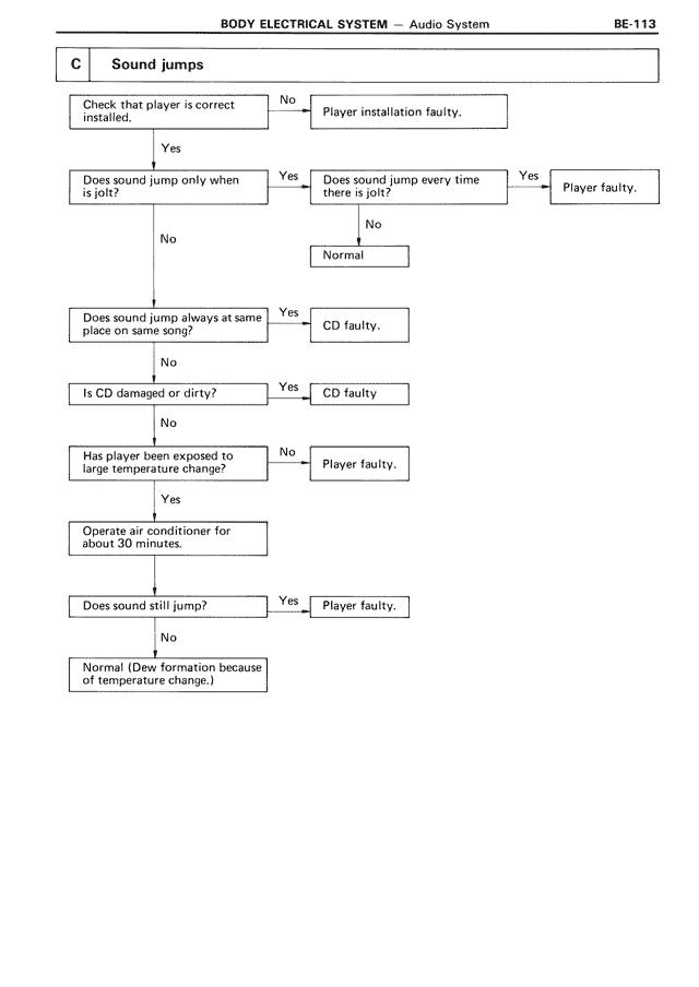 Does sound jump always at same place on same song? → Yes → CD faulty.