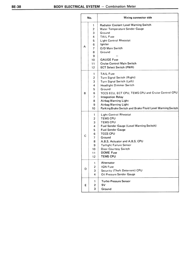 BE-38 BODY ELECTRICAL SYSTEM — Combination Meter