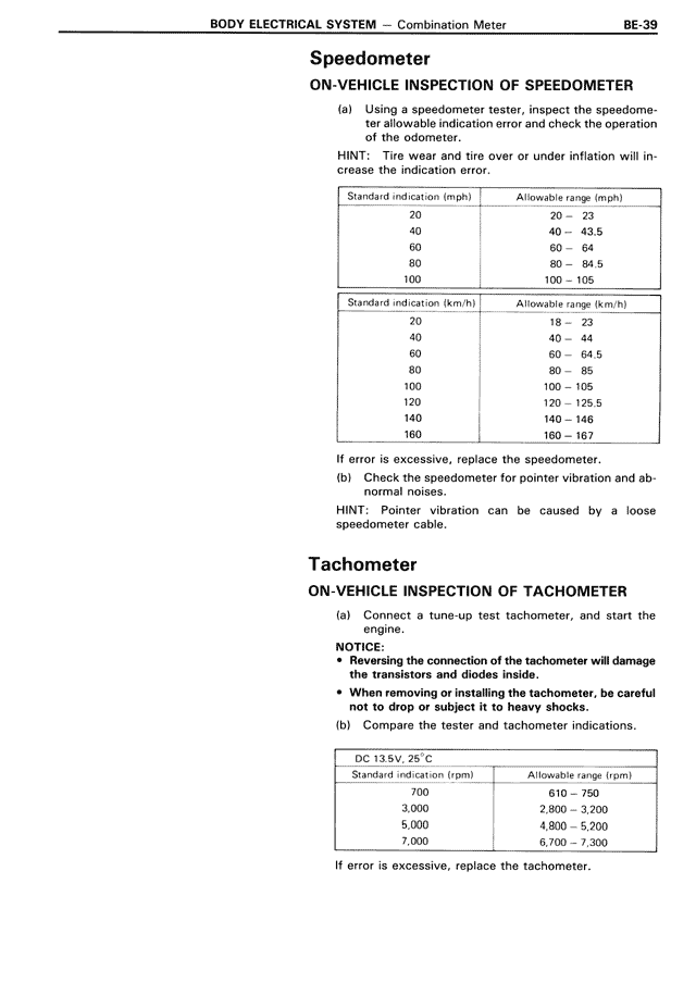 ON-VEHICLE INSPECTION OF TACHOMETER