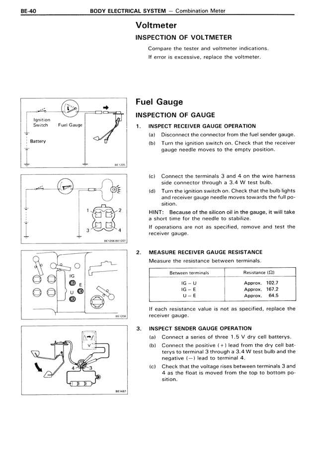 (b) Turn the ignition switch on. Check that the receiver gauge needle moves to the empty position.