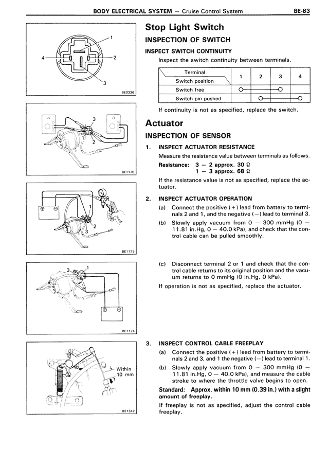 (c) Disconnect terminal 2 or 1 and check that the control cable returns to its original position and the vacuum returns to 0 mmHg (0 in.Hg, 0 kPa).