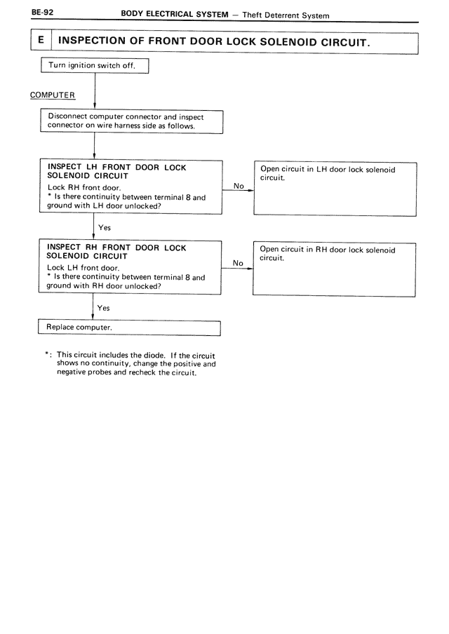 INSPECTION OF FRONT DOOR LOCK SOLENOID CIRCUIT.