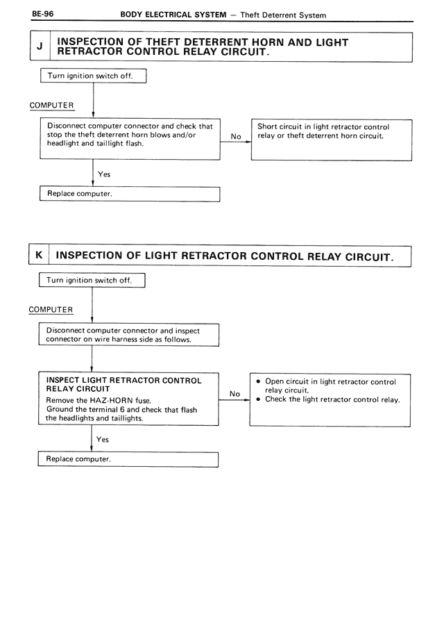 No → Short circuit in light retractor control relay or theft deterrent horn circuit.