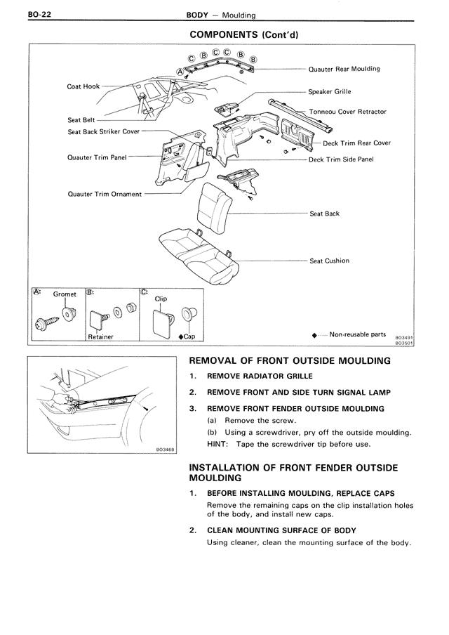 3. REMOVE FRONT FENDER OUTSIDE MOULDING