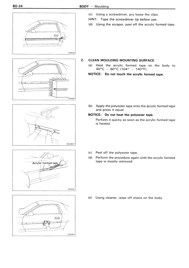 (a) Heat the acrylic formed tape on the body to 40°C — 60°C (104° — 140°F).