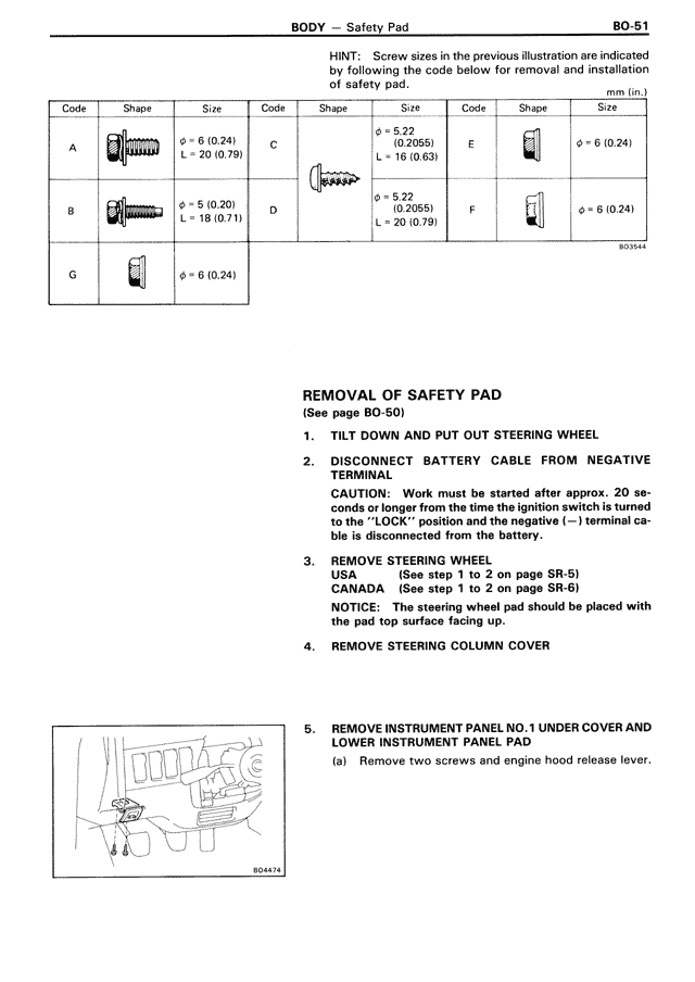 HINT: Screw sizes in the previous illustration are indicated by following the code below for removal and installation of safety pad. unit in ( ): mm in (in.)