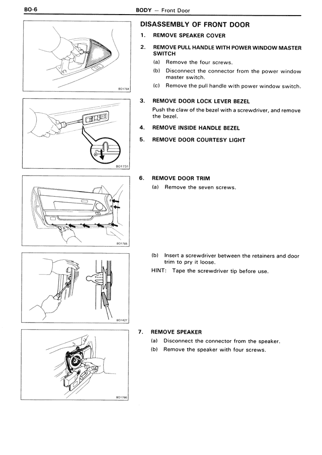 (b) Insert a screwdriver between the retainers and door trim to pry it loose.
