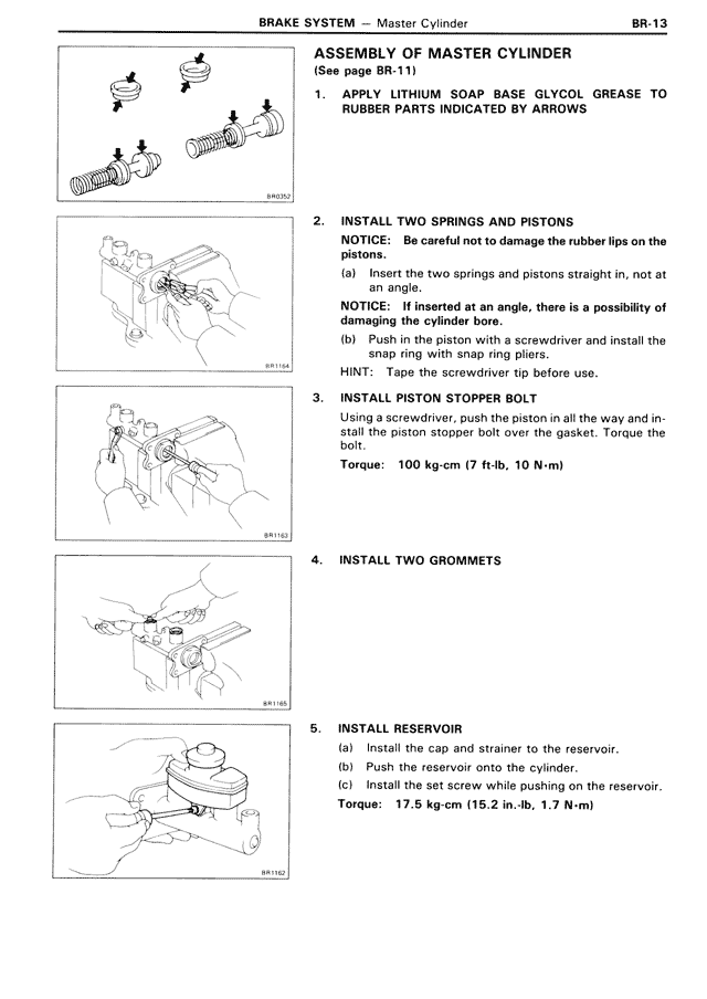 NOTICE: Be careful not to damage the rubber lips on the pistons.