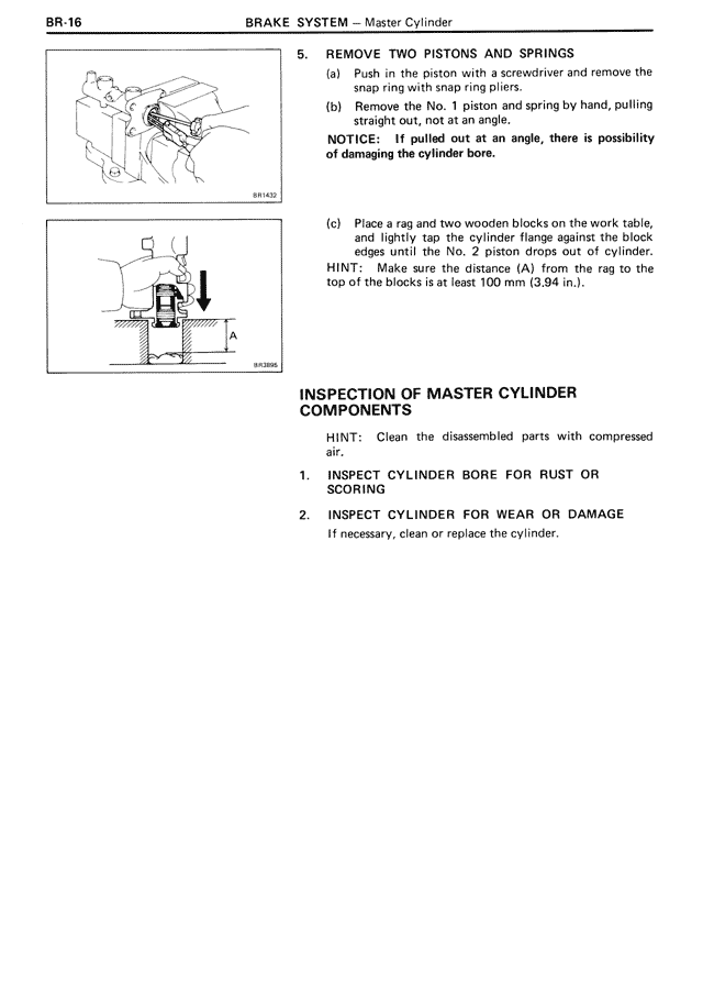 INSPECTION OF MASTER CYLINDER COMPONENTS