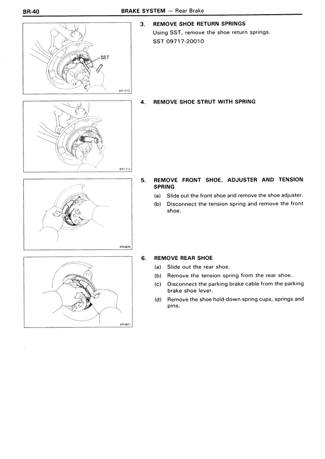 (d) Remove the shoe hold-down spring cups, springs and pins.