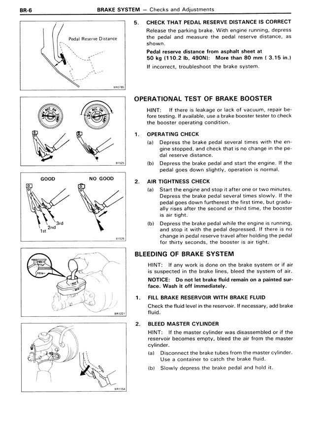 HINT: If the master cylinder was disassembled or if the reservoir becomes empty, bleed the air from the master cylinder.