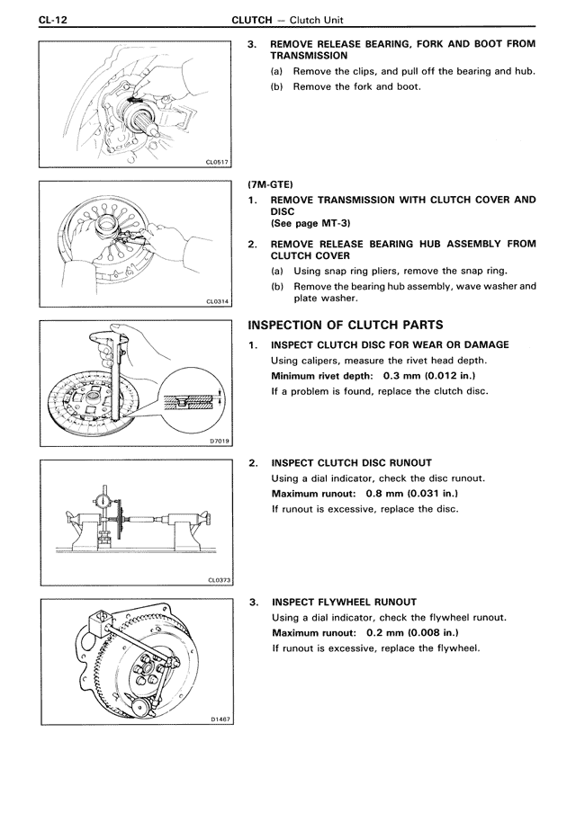 1. INSPECT CLUTCH DISC FOR WEAR OR DAMAGE