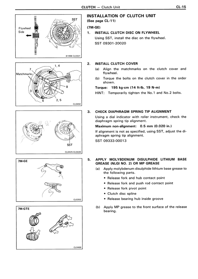 (b) Torque the bolts on the clutch cover in the order shown.