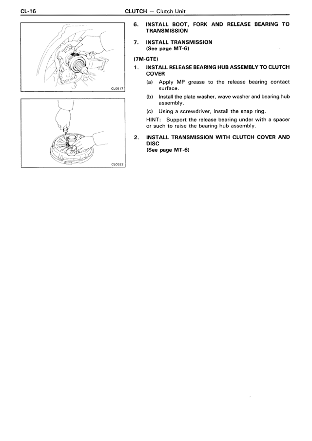 1. INSTALL RELEASE BEARING HUB ASSEMBLY TO CLUTCH