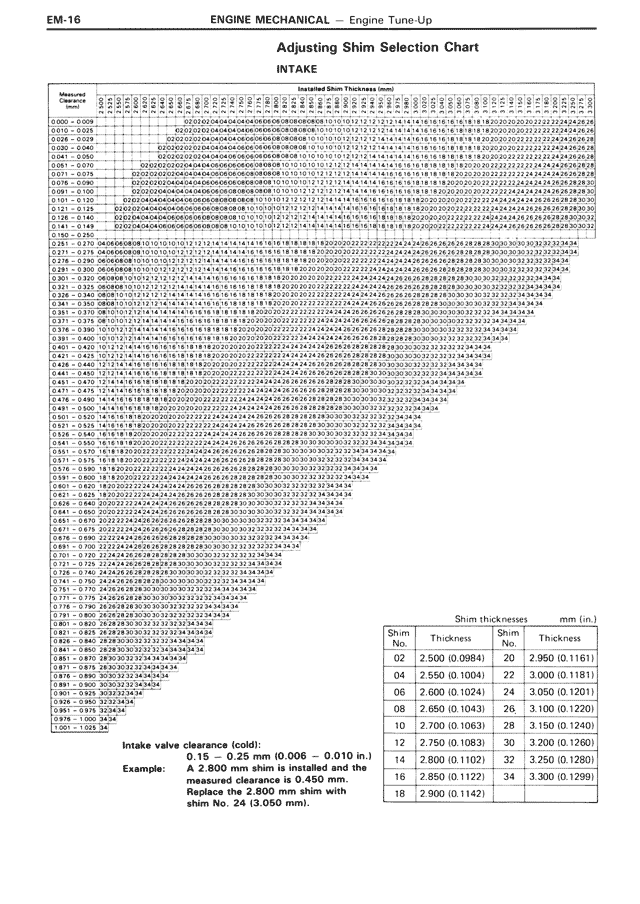 Adjusting Shim Selection Chart