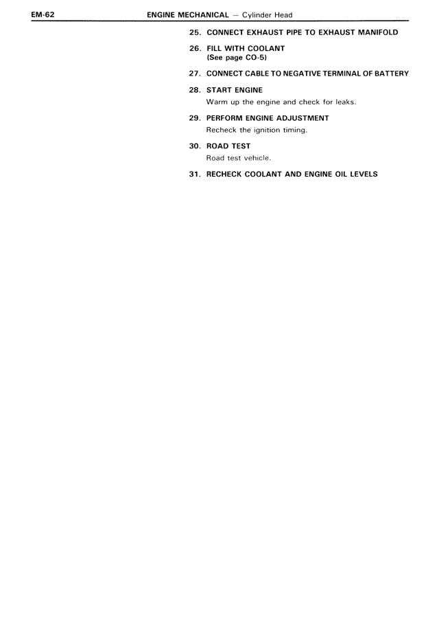 31. RECHECK COOLANT AND ENGINE OIL LEVELS