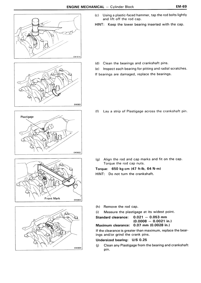 If the clearance is greater then maximum, replace the bearings and/or grind the crank pins.