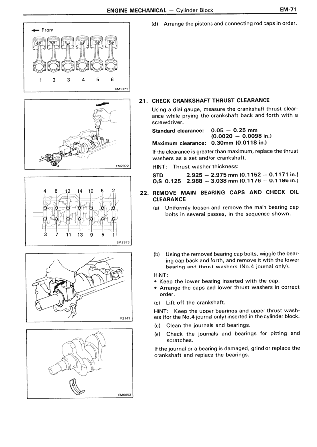 21. CHECK CRANKSHAFT THRUST CLEARANCE