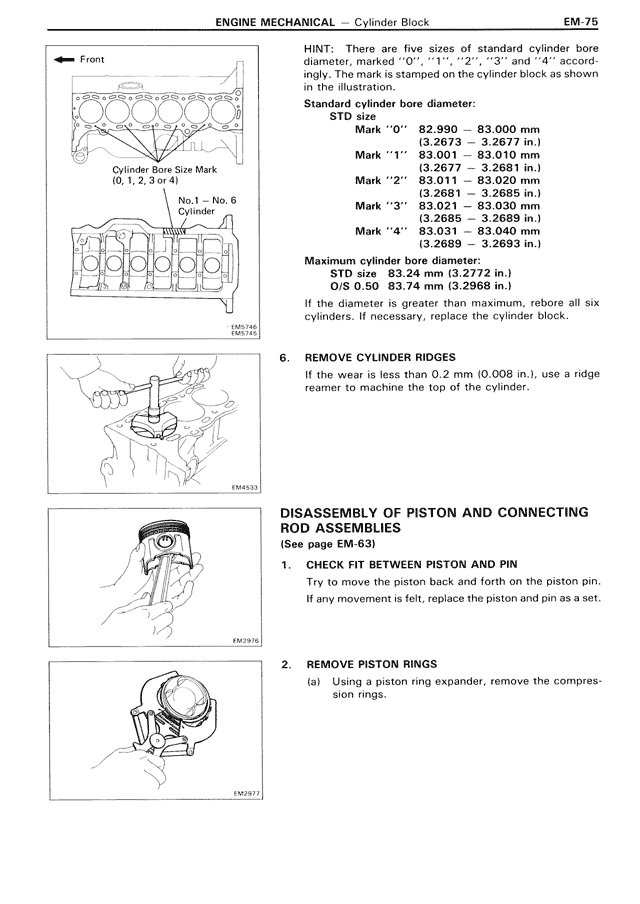 HINT: There are five sizes of standard cylinder bore diameter, marked "0", "1", "2", "3" and "4" accordingly. The mark is stamped on the cylinder block as shown in the illustration.