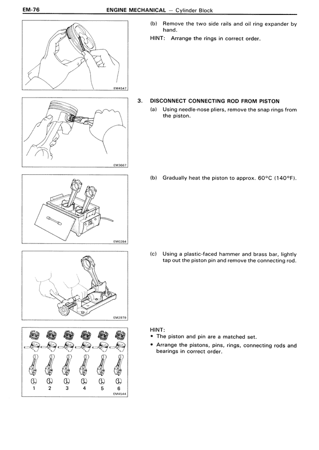3. DISCONNECT CONNECTING ROD FROM PISTON