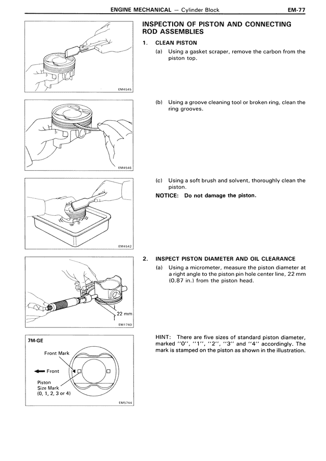 2. INSPECT PISTON DIAMETER AND OIL CLEARANCE