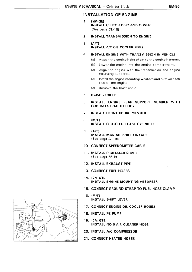 4. INSTALL ENGINE WITH TRANSMISSION IN VEHICLE