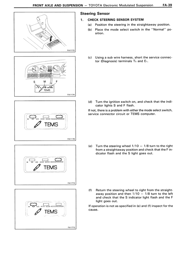 (f) Return the steering wheel to right from the straightaway position and then 1/10 - 1/8 turn to the left and check that the S indicator light flash and the F light goes out.