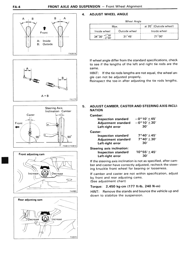 5. ADJUST CAMBER, CASTER AND STEERING AXIS INCLINATION