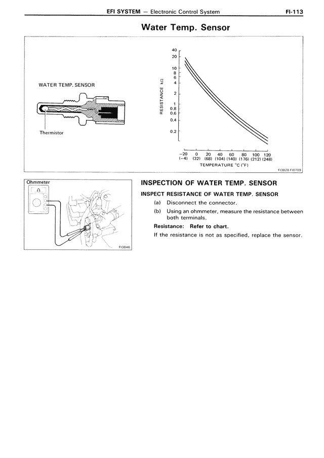 INSPECT RESISTANCE OF WATER TEMP. SENSOR