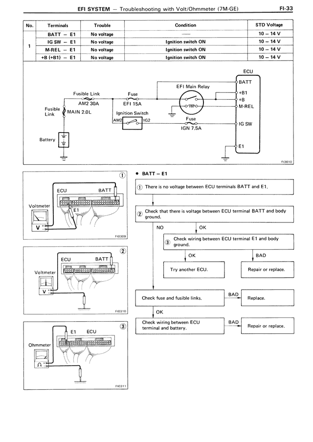 EFI SYSTEM — Troubleshooting with Volt/Ohmmeter (7M GE) FI-33
